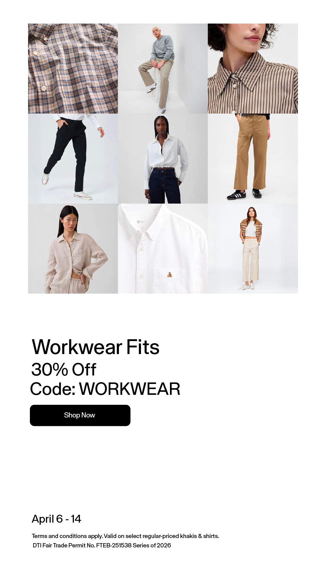 - Enjoy 30% off on regular-priced khaki and shirt styles. Use code: WORKWEAR