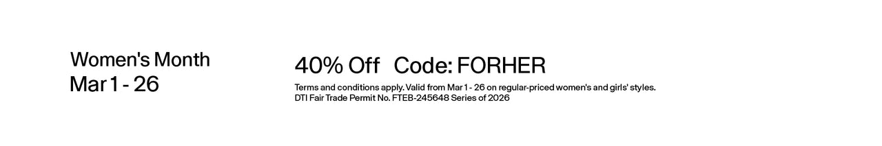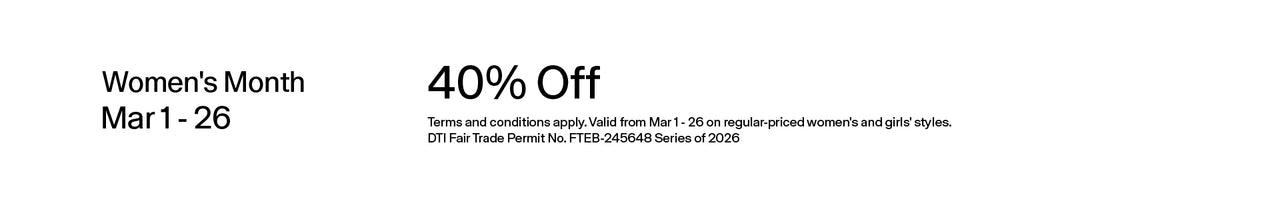 Celebrating Women's month with an exclusive 40% off on select regular-priced styles for women and girls.